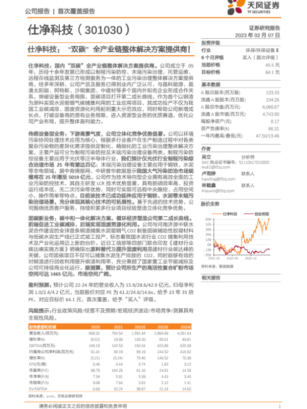 【天风证券】【20230207】仕净科技:“双碳”全产业链整体解决方案提供商-34页