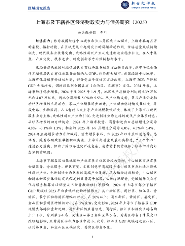 【公共融资部 李叶】【2025】上海市及下辖各区经济财政实力与债务研究(2025)-33页
