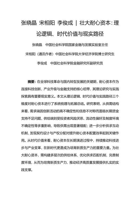 【张晓晶&宋相阳&李俊成】【2025】壮大耐心资本:理论逻辑、时代价值与现实路径-28页