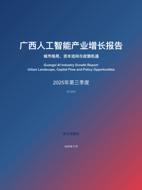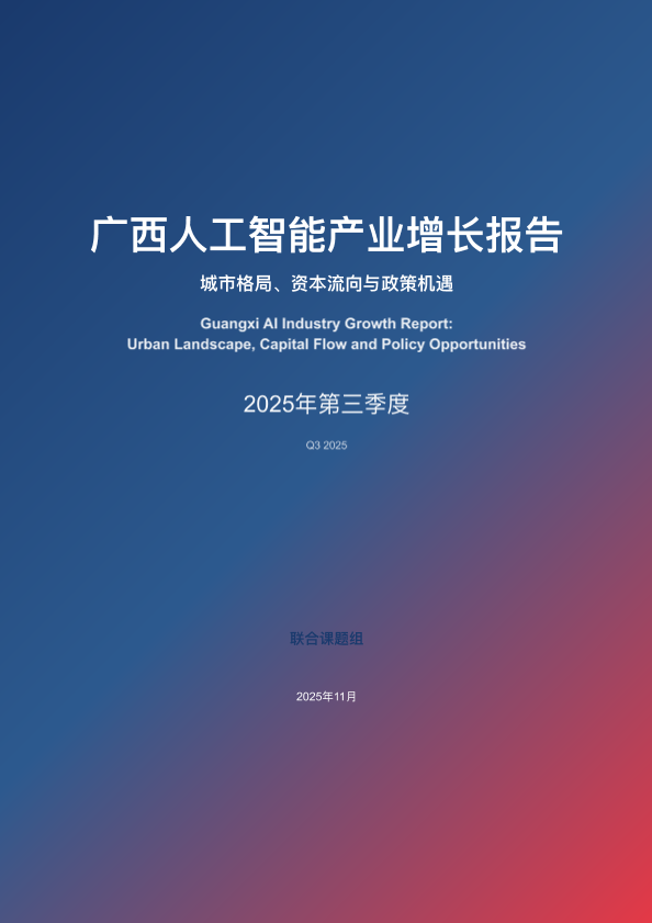 【中国人民大学国家中小企业研究院&中国东方文化研究会&北京大学智能学院&广西人工智能学会&赛迪顾问(数字转型研究中心)&孔雀西南飞&中关村科学城科技服务业促进会融通专委会&广西桂农乡村振兴规划发展研究院&北京百色企业商会&北京广西大厦集团有限公司&诺本数据】【202511】广西人工智能产业增长报告:城市格局、资本流向与政策机遇-27页