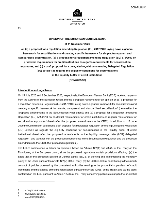 【欧洲中央银行】【202511】关于修订证券化法规、资本要求条例及流动性覆盖率委托条例的立场意见-23页