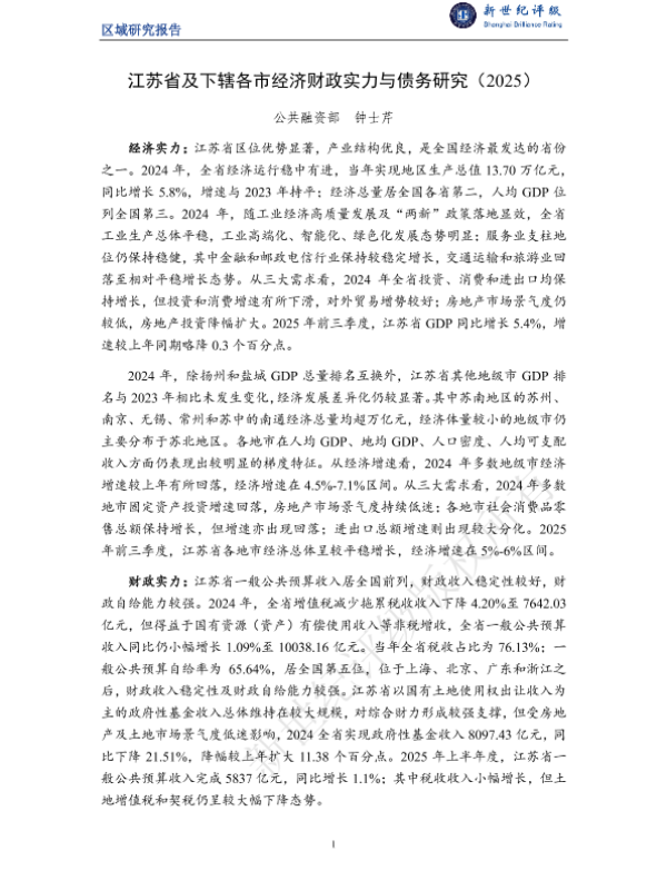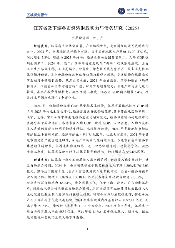 【公共融资部 钟士芹】【2025】江苏省及下辖各市经济财政实力与债务研究(2025)-26页
