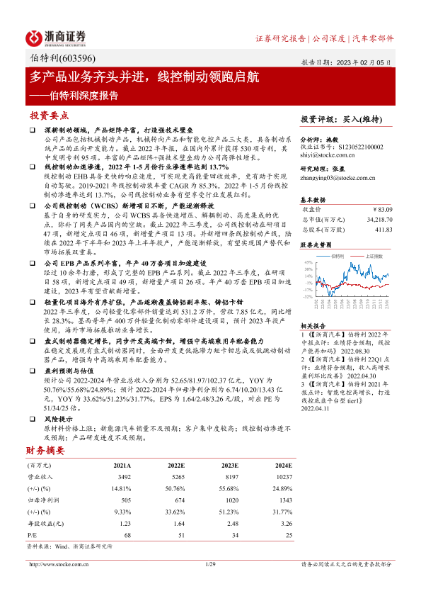 【浙商证券】【20230205】伯特利深度报告:多产品业务齐头并进,线控制动领跑启航-29页