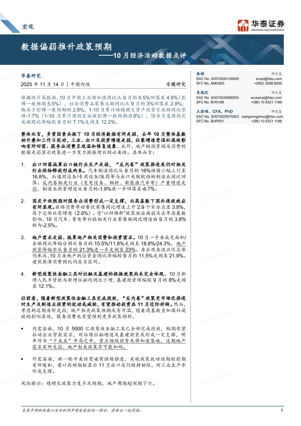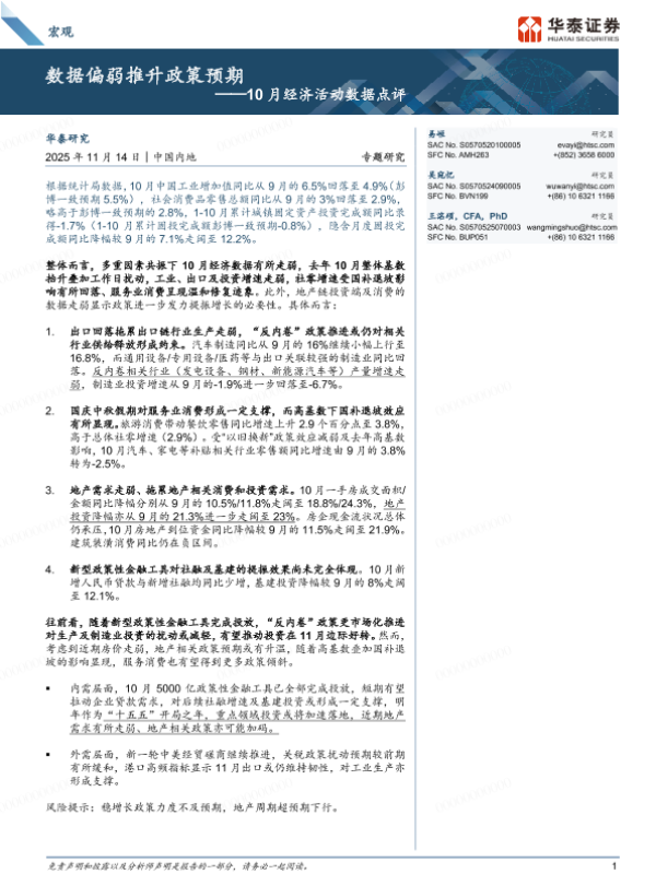 【华泰证券】【202511】数据偏弱推升政策预期——10月经济活动数据点评-10页