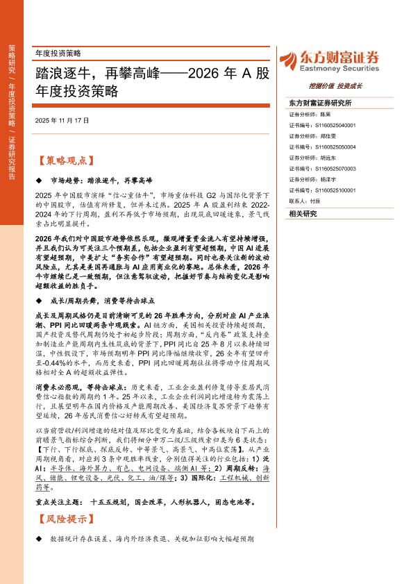 【东方财富证券】【202511】踏浪逐牛,再攀高峰——2026年 A股年度投资策略-25页