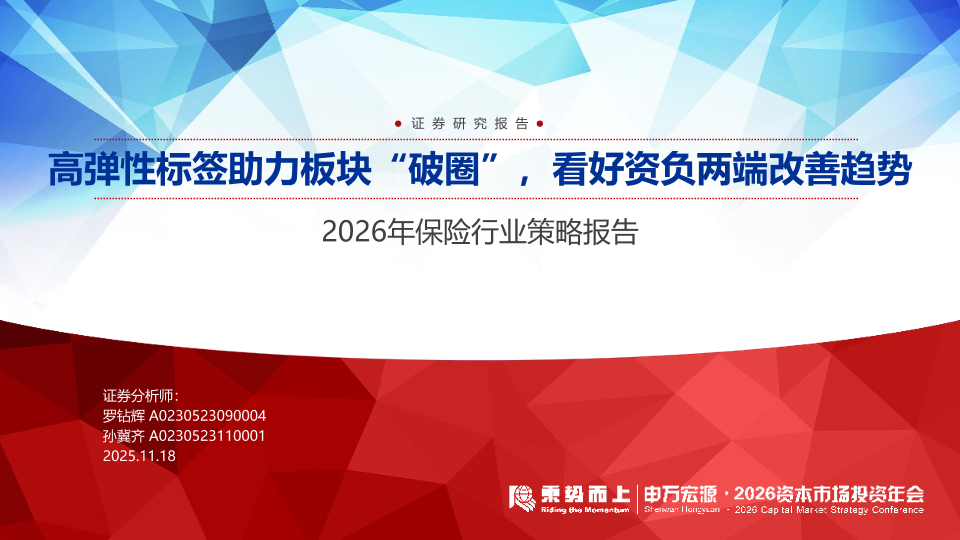 【申万宏源】【202511】2026年保险行业策略报告:高弹性标签助力板块“破圈”,看好资负两端改善趋势-43页