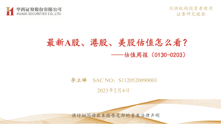 【华西证券】【20230204】估值周报:最新A股、港股、美股估值怎么看?-37页