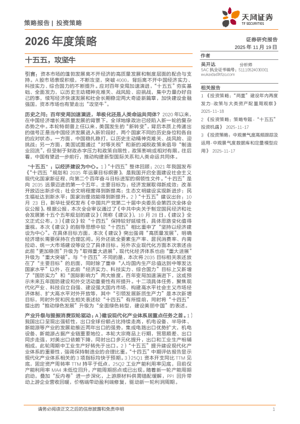 【天风证券】【202511】2026年度策略:十五五,攻坚牛-69页