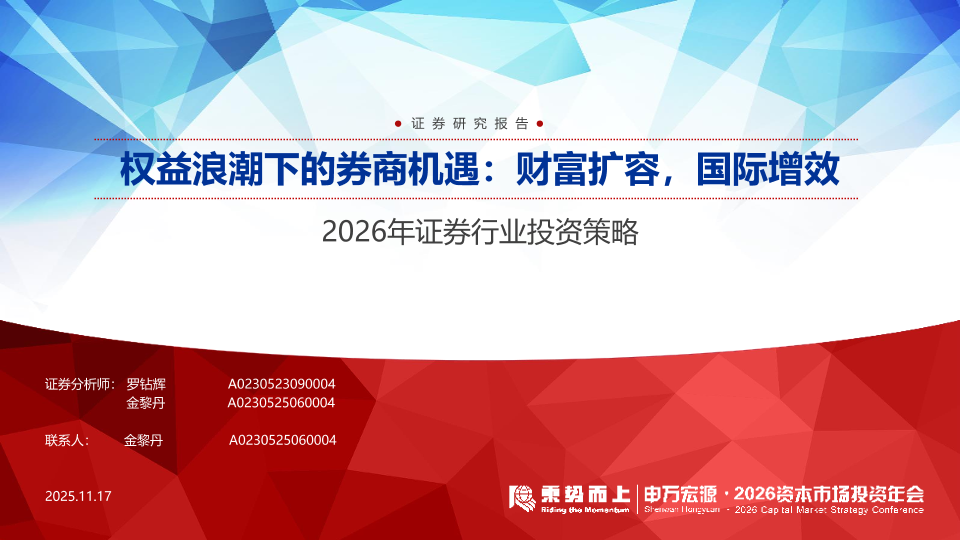 【申万宏源】【202511】2026年证券行业投资策略:权益浪潮下的券商机遇,财富扩容,国际增效-37页