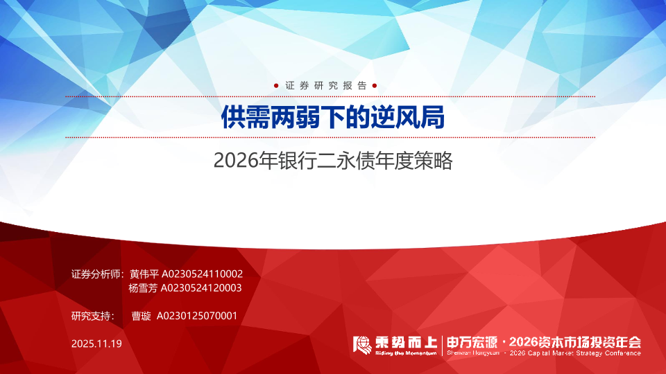 【申万宏源】【202511】2026年银行二永债年度策略:供需两弱下的逆风局-71页