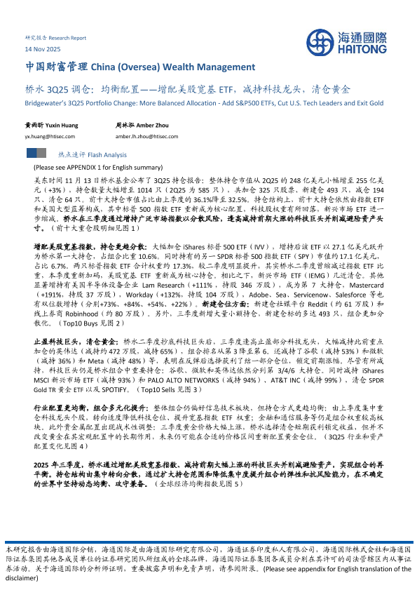 【海通国际】【202511】桥水3Q25调仓,均衡配置——增配美股宽基ETF,减持科技龙头,清仓黄金-11页