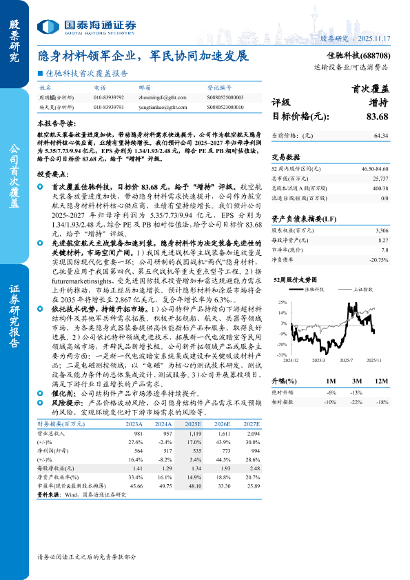 【国泰海通证券】【202511】隐身材料领军企业,军民协同加速发展-26页