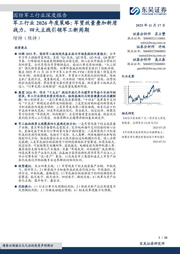 【东吴证券】【202511】国防军工行业深度报告:军工行业2026年度策略,军贸放量叠加新质战力,四大主线引领军工新周期-34页