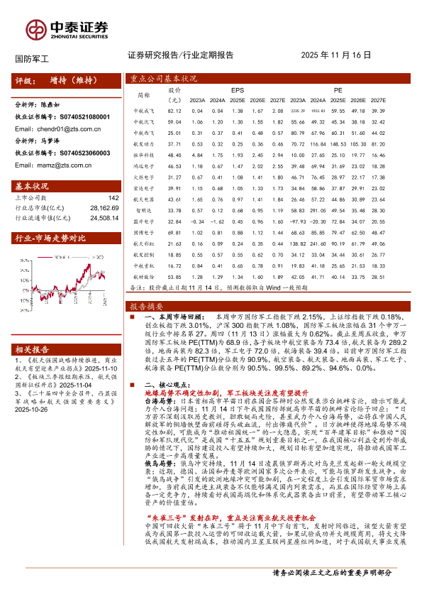 【中泰证券】【202511】国防军工:地缘局势不确定性加剧,军工板块关注度有望提升-21页