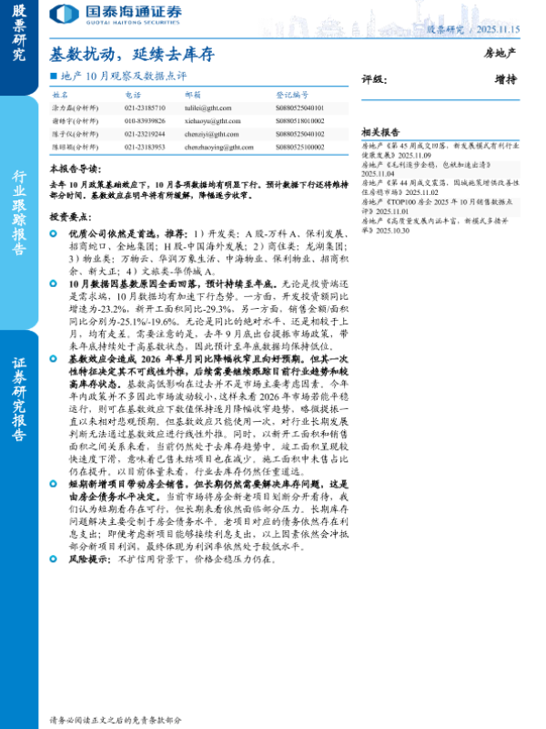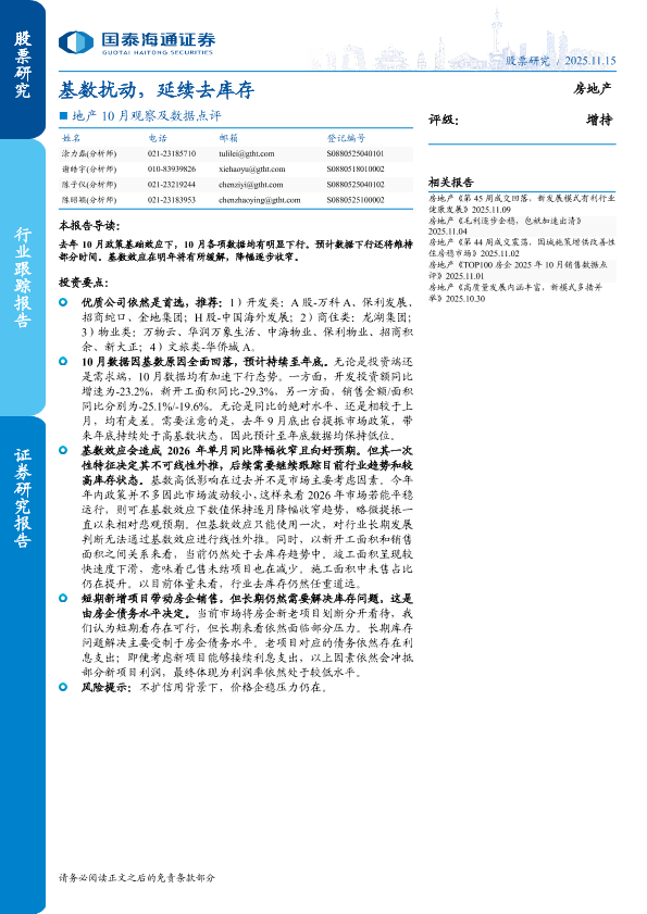 【国泰海通证券】【202511】地产10月观察及数据点评:基数扰动,延续去库存-11页