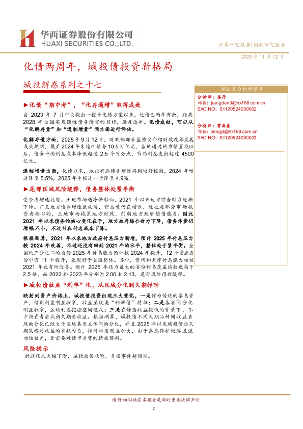 【华西证券】【202511】化债两周年,城投债投资新格局-16页