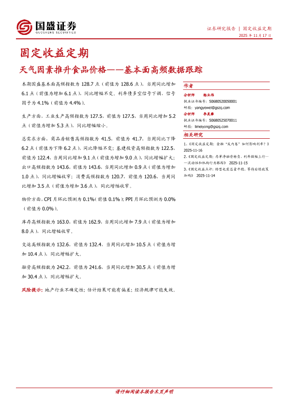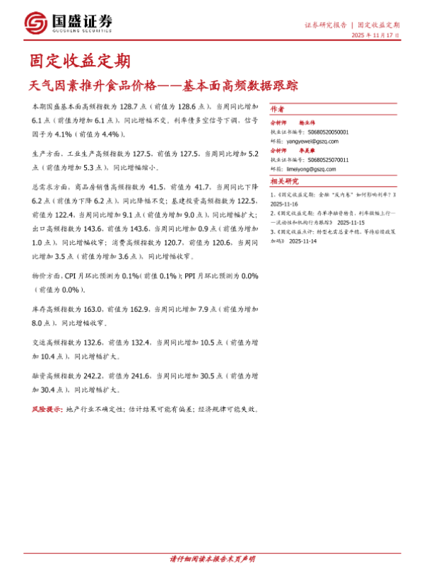 【国盛证券】【202511】基本面高频数据跟踪:天气因素推升食品价格-20页