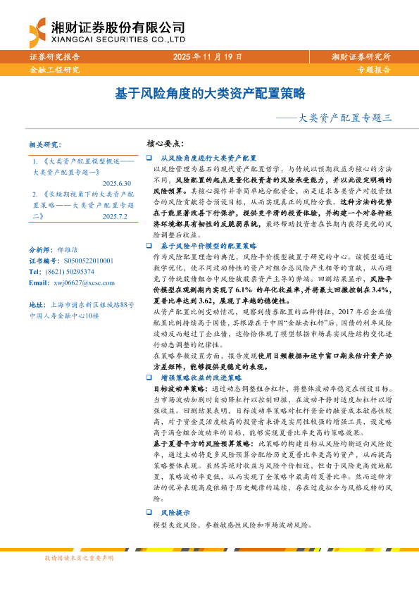 【湘财证券】【202511】基于风险角度的大类资产配置策略-27页