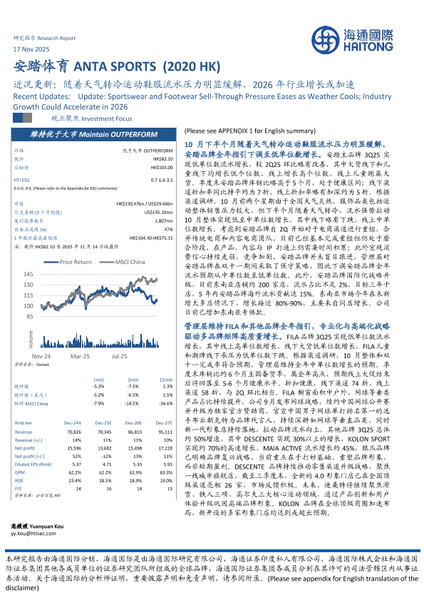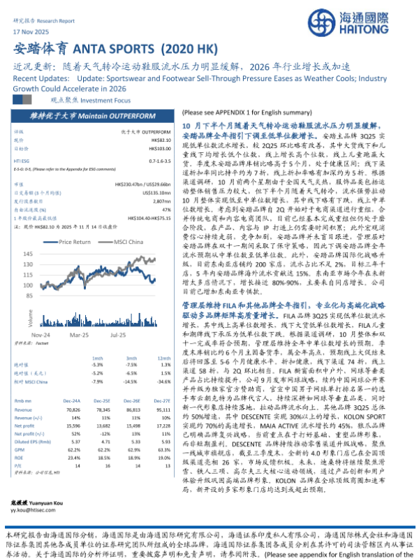 【海通国际】【202511】安踏体育(002020.HK)近况更新:随着天气转冷运动鞋服流水压力明显缓解,2026年行业增长或加速-14页