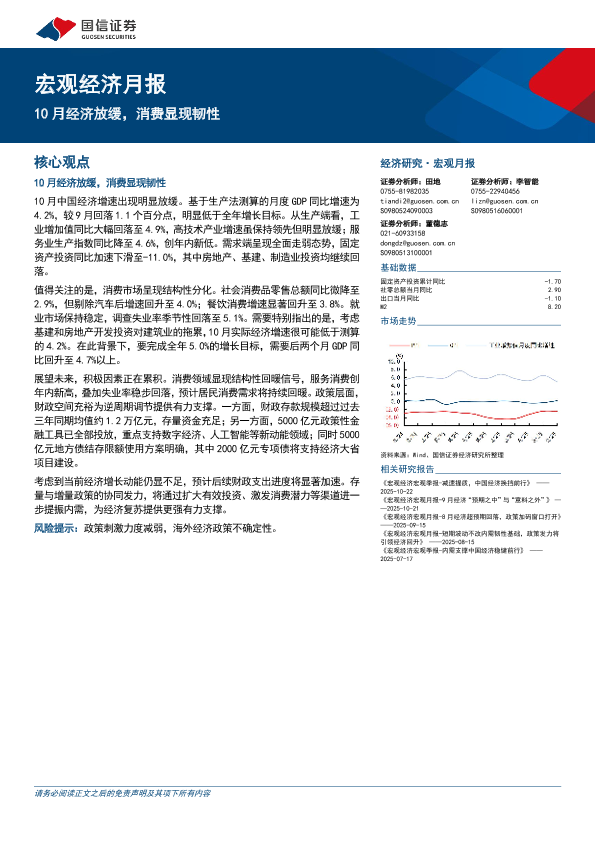 【国信证券】【202510】宏观经济月报:10月经济放缓,消费显现韧性-14页