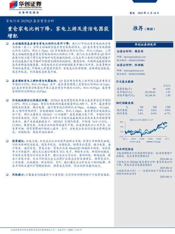 【华创证券】【202511】家电行业2025Q3基金重仓分析:重仓家电比例下降,家电上游及清洁电器获增配-14页