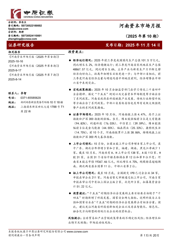 【中原证券】【202511】河南资本市场月报(2025年第 10期)-20页