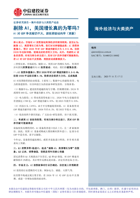 【中信建投证券】【202511】剔除AI,美国增长真的为零吗?AI对GDP净贡献仍不大,谈投资驱动尚早(更新)-10页