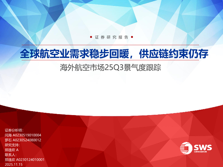 【申万宏源】【202511】海外航空市场25Q3景气度跟踪:全球航空业需求稳步回暖,供应链约束仍存-31页