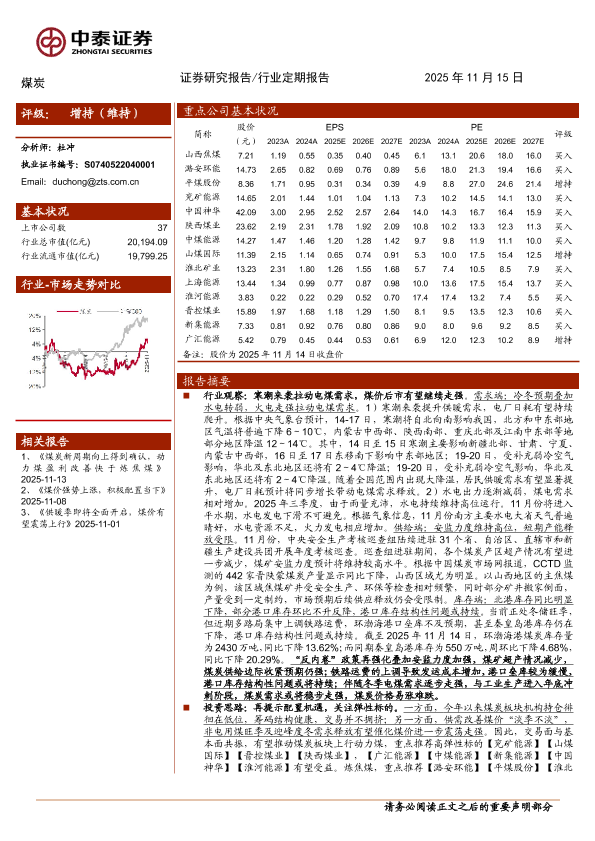 【中泰证券】【202511】煤炭行业定期报告:寒潮来袭提振需求,煤价上涨动力仍强-23页