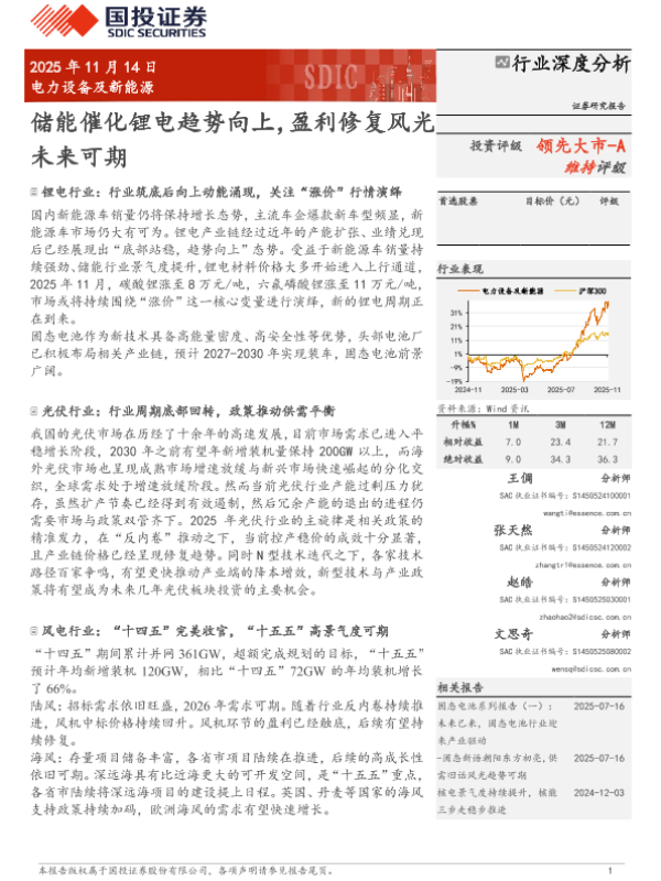 【国投证券】【202511】电力设备及新能源行业:储能催化锂电趋势向上,盈利修复风光未来可期-31页