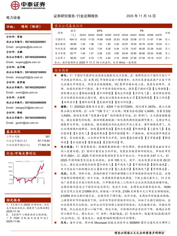 【中泰证券】【202511】电力设备:海博与宁德签订十年战略合作协议,VC市场供应缺口持续增加-16页