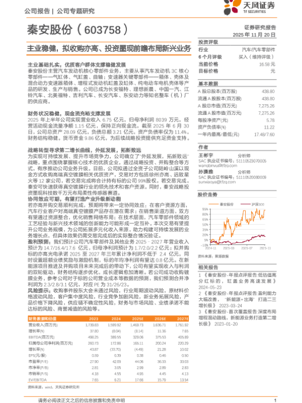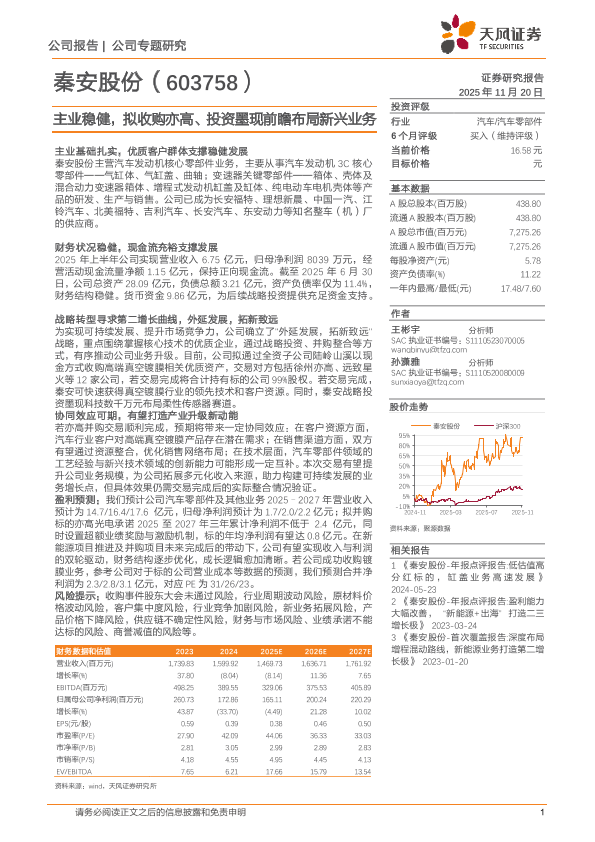 【天风证券】【202511】秦安股份(603758)主业稳健,拟收购亦高、投资墨现前瞻布局新兴业务-13页
