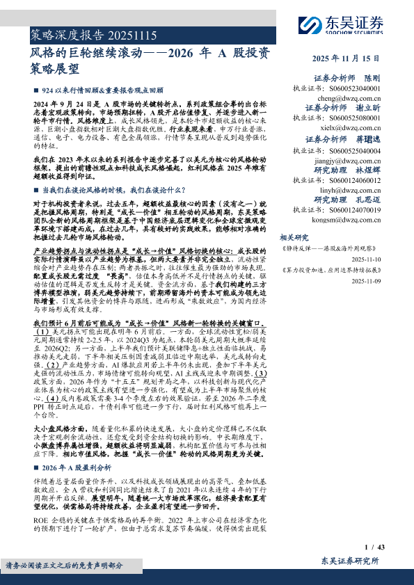 【东吴证券】【202511】风格的巨轮继续滚动——2026年A股投资策略展望-43页