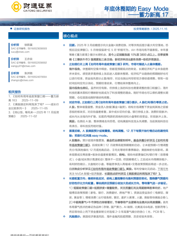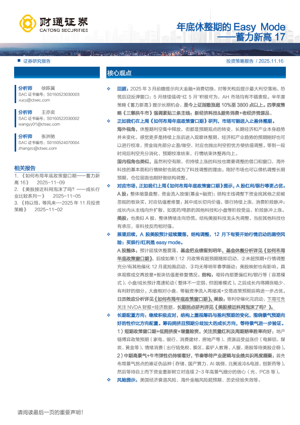 【财通证券】【202511】年底休整期的 Easy Mode ——蓄力新高 17-11页
