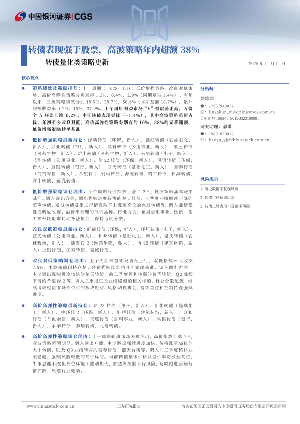 【银河证券】【202511】转债表现强于股票,高波策略年内超额 38%——转债量化类策略更新-11页