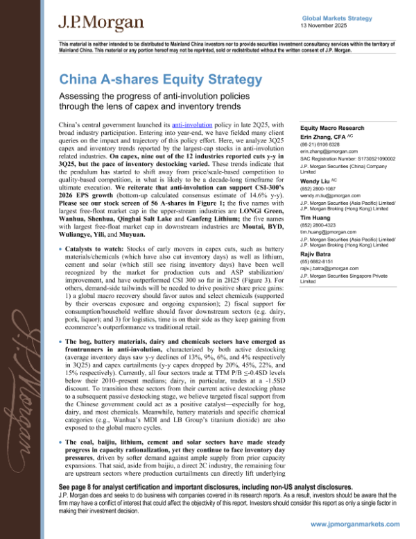 【J.P. Morgan】【202511】China A-shares Equity Strategy Assessing the progress of anti-involution policies through the lens of capex and inventory trends-13页
