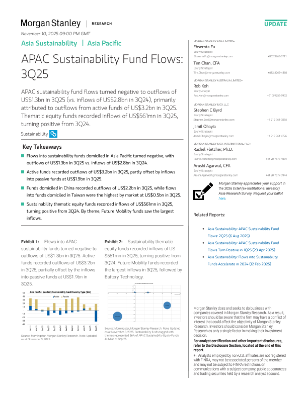 【Morgan Stanley】【202511】APAC Sustainability Fund Flows 3Q25-11页