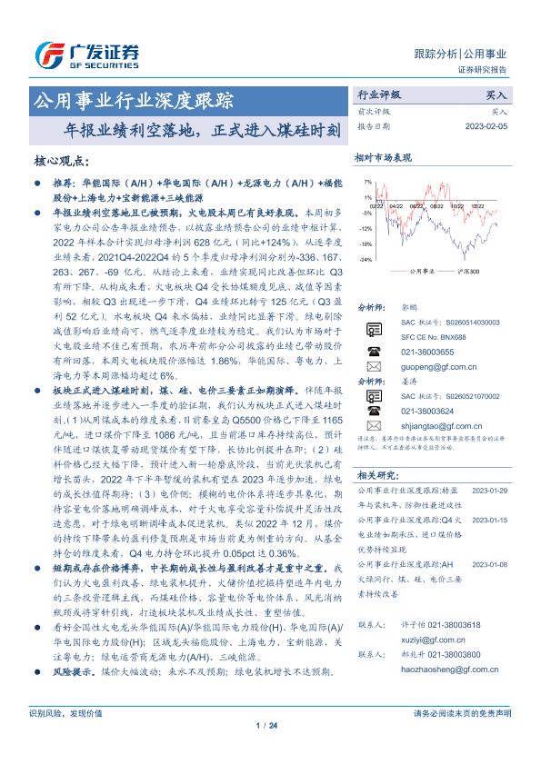 【广发证券】【20230205】公用事业行业深度跟踪:年报业绩利空落地,正式进入煤硅时刻-24页