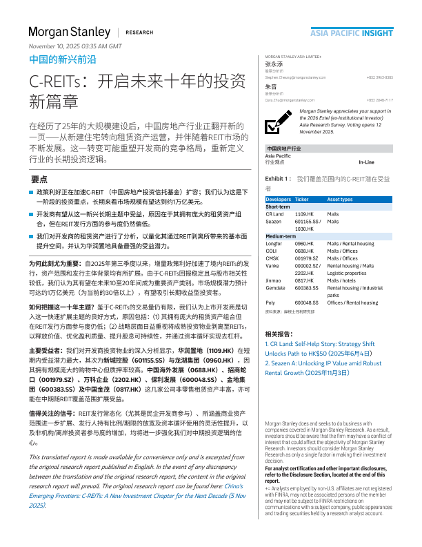 【Morgan Stanley】【202511】中国的新兴前沿 C-REITs 开启未来十年的投资新篇章-14页