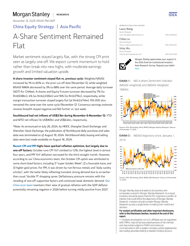 【Morgan Stanley】【202511】China Equity Strategy1Asia Pacific A-Share Sentiment Remained Flat-13页