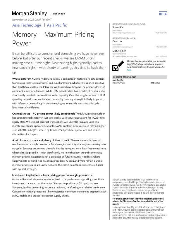 【Morgan Stanley】【2025】Memory-Maximum Pricing Power-25页