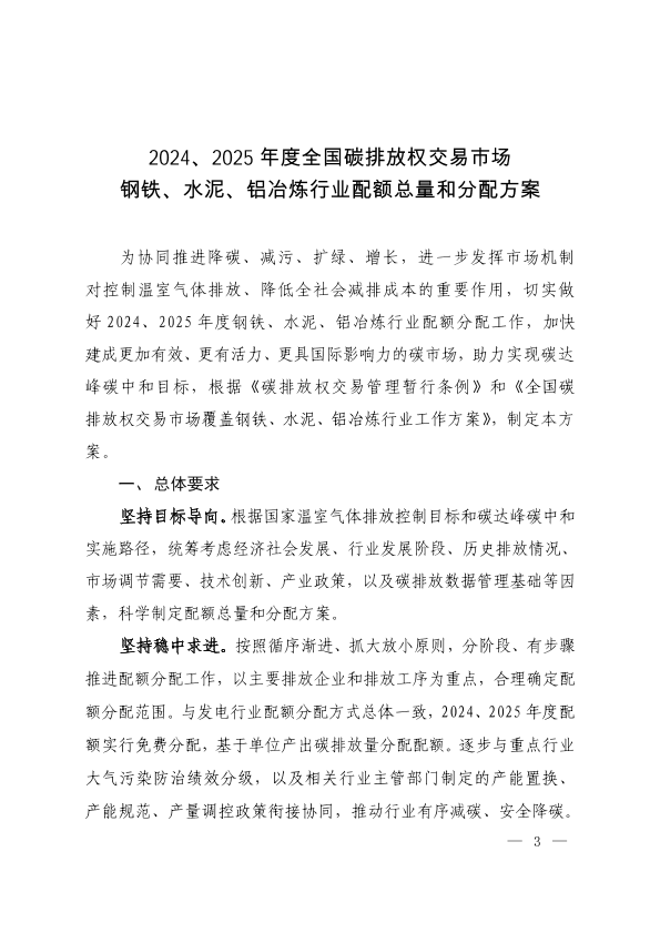 【生态环境部】【2024】2024、2025年度全国碳排放权交易市场钢铁、水泥、铝冶炼行业配额总量和分配方案-19页
