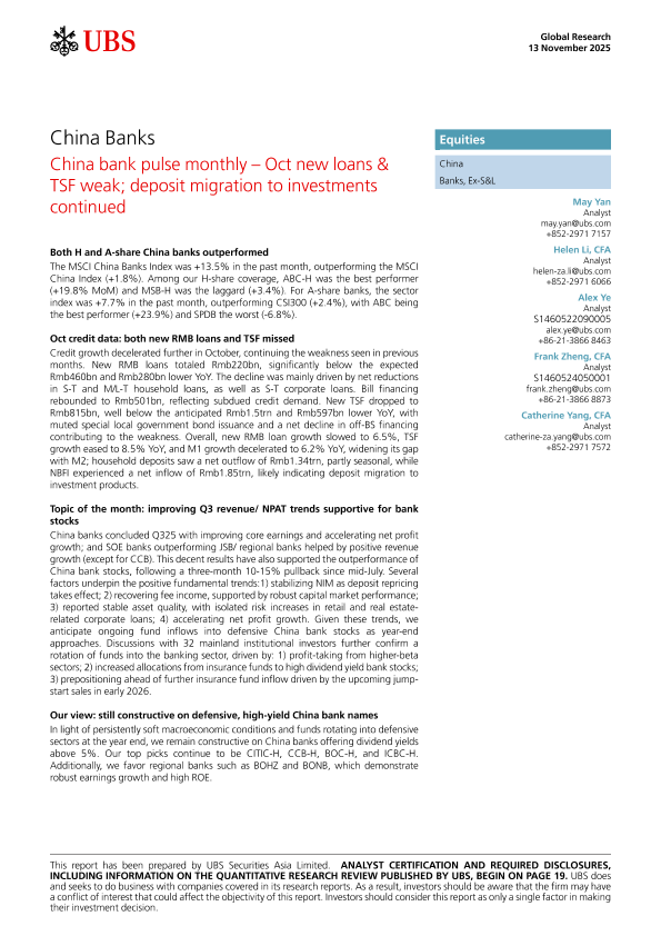【UBS】【202511】China bank pulse monthly- Oct new loans &TSF weak; deposit migration to investments continued-27页