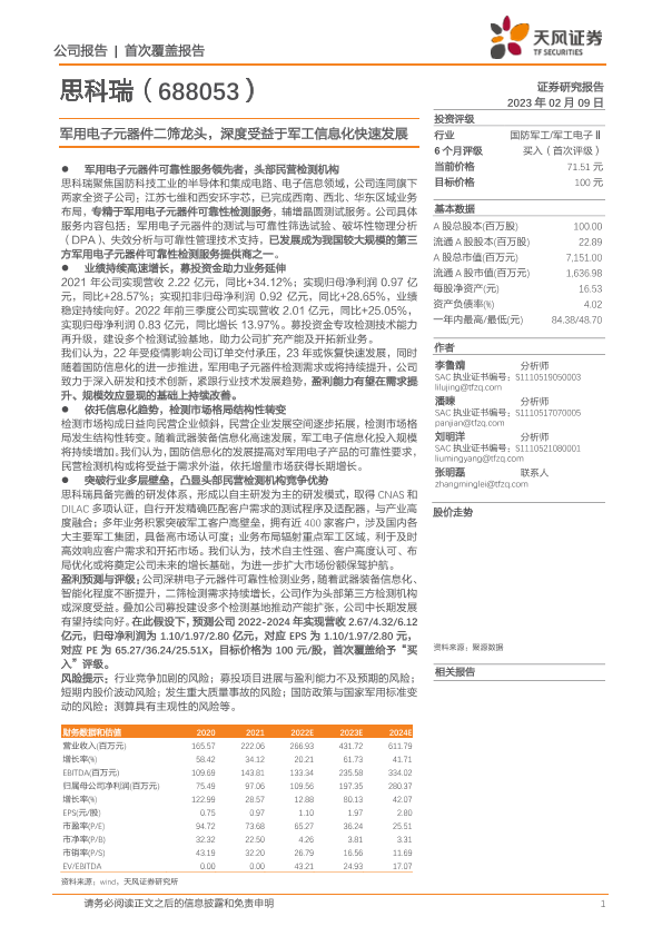 【天风证券】【20230209】军用电子元器件二筛龙头,深度受益于军工信息化快速发展-15页