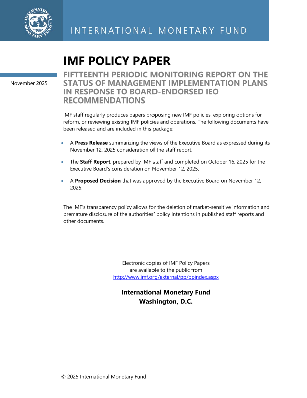 【国际货币基金组织】【202511】FIFTEENTH PERIODIC MONITORING REPORT ON THE STATUS OF MANAGEMENT IMPLEMENTATION PLANS IN RESPONSE TO BOARD-ENDORSED IEO RECOMMENDATIONS-51页