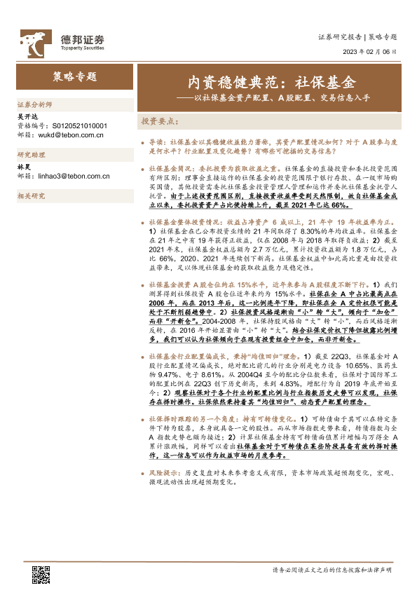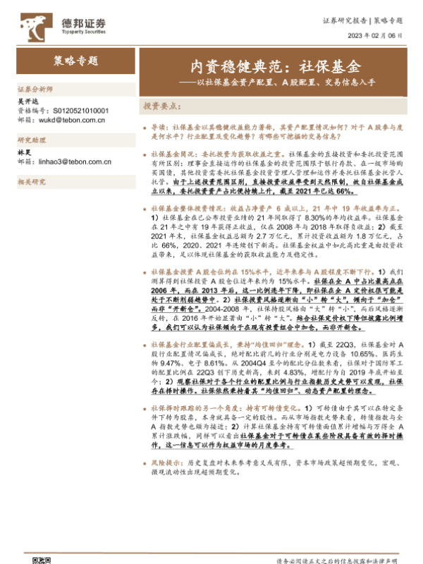 【德邦证券】【20230206】内资稳健典范:社保基金——以社保基金资产配置、A股配置、交易信息入手-17页