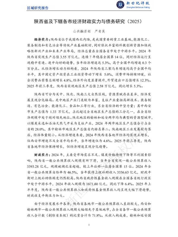 【公共融资部 严奇昊】【2025】陕西省及下辖各市经济财政实力与债务研究(2025)-26页