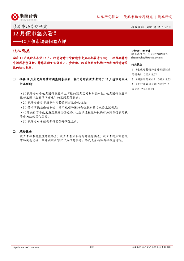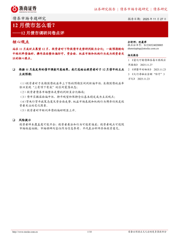 【浙商证券】【202511】12月债市怎么看?——12月债市调研问卷点评-10页