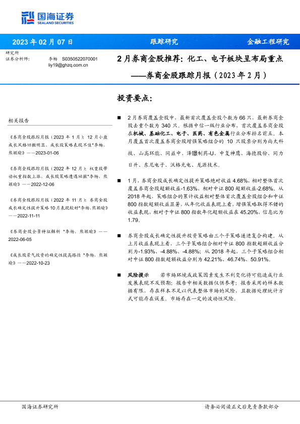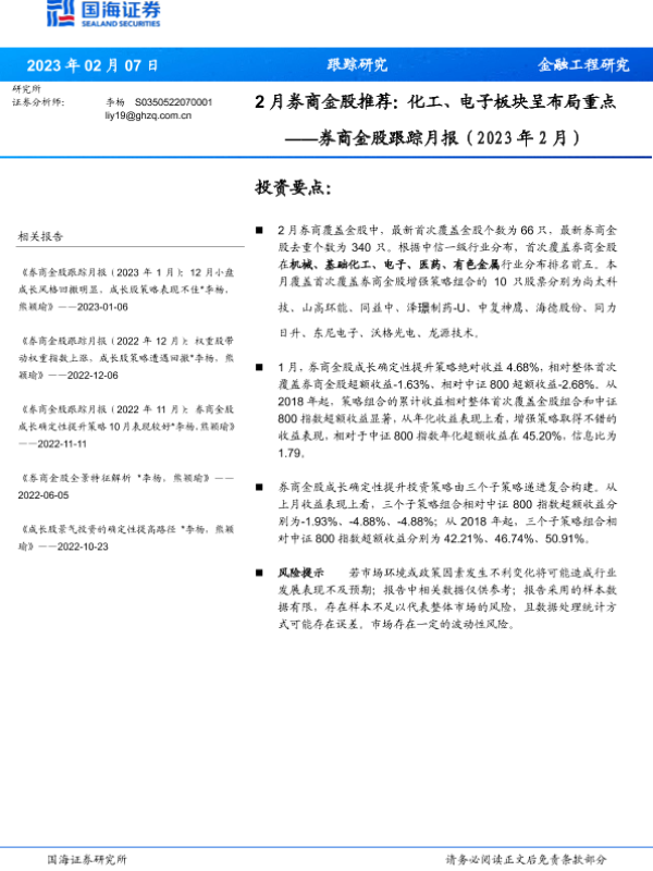 【国海证券】【20230207】券商金股跟踪月报(2023年2月):2月券商金股推荐,化工、电子板块呈布局重点-16页