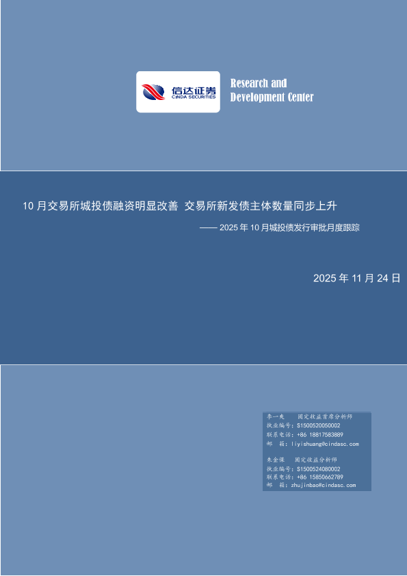 【信达证券股份有限公司 C INDA SECUR IT IES CO.<D】【202511】2025年10月城投债发行审批月度跟踪:10月交易所城投债融资明显改善交易所新发债主体数量同步上升-19页